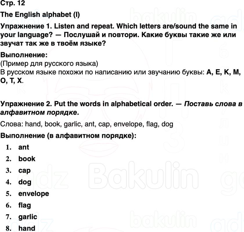 Упражнение 2. Put the words in alphabetical order. — Поставь слова в алфавитном порядке.