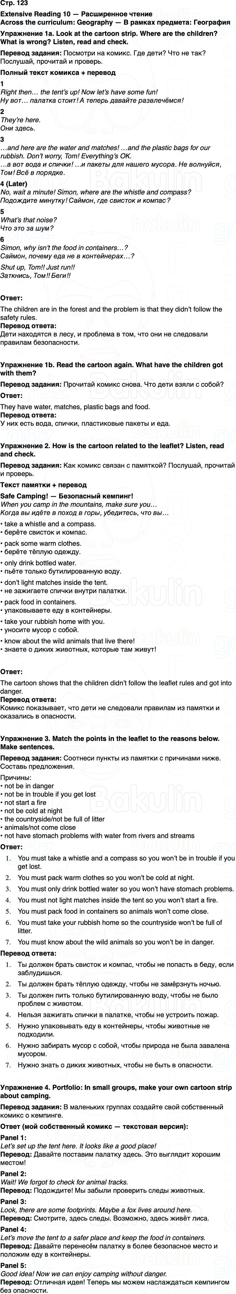 Перевод задания: Прочитай комикс снова. Что дети взяли с собой?