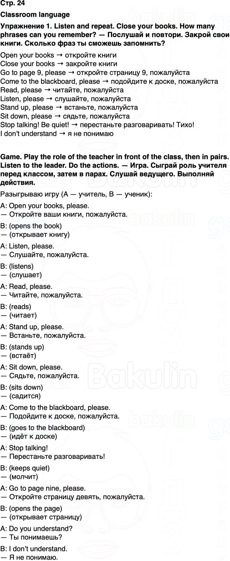 Упражнение 1. Listen and repeat. Close your books. How many phrases can you remember? — Послушай и повтори. Закрой свои книги. Сколько фраз ты сможешь запомнить?