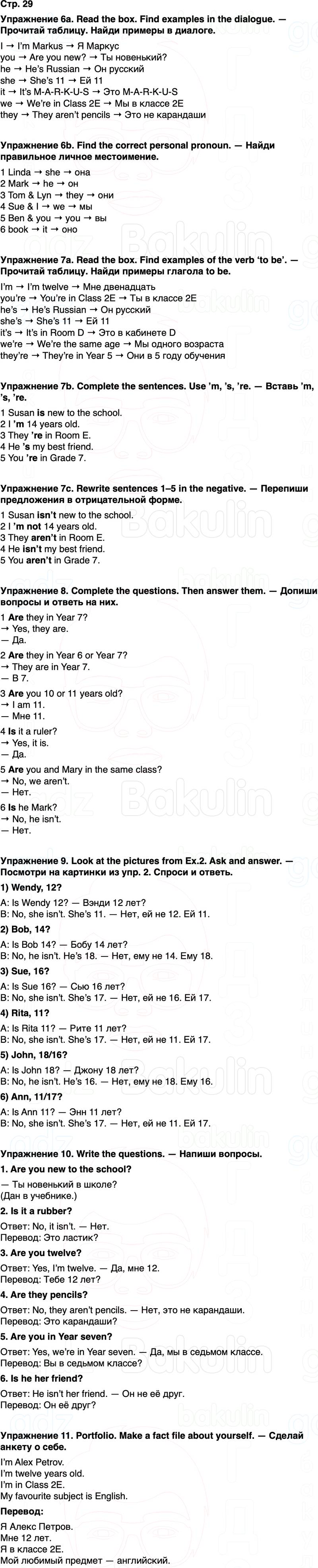 Упражнение 7a. Read the box. Find examples of the verb ‘to be’. — Прочитай таблицу. Найди примеры глагола to be.