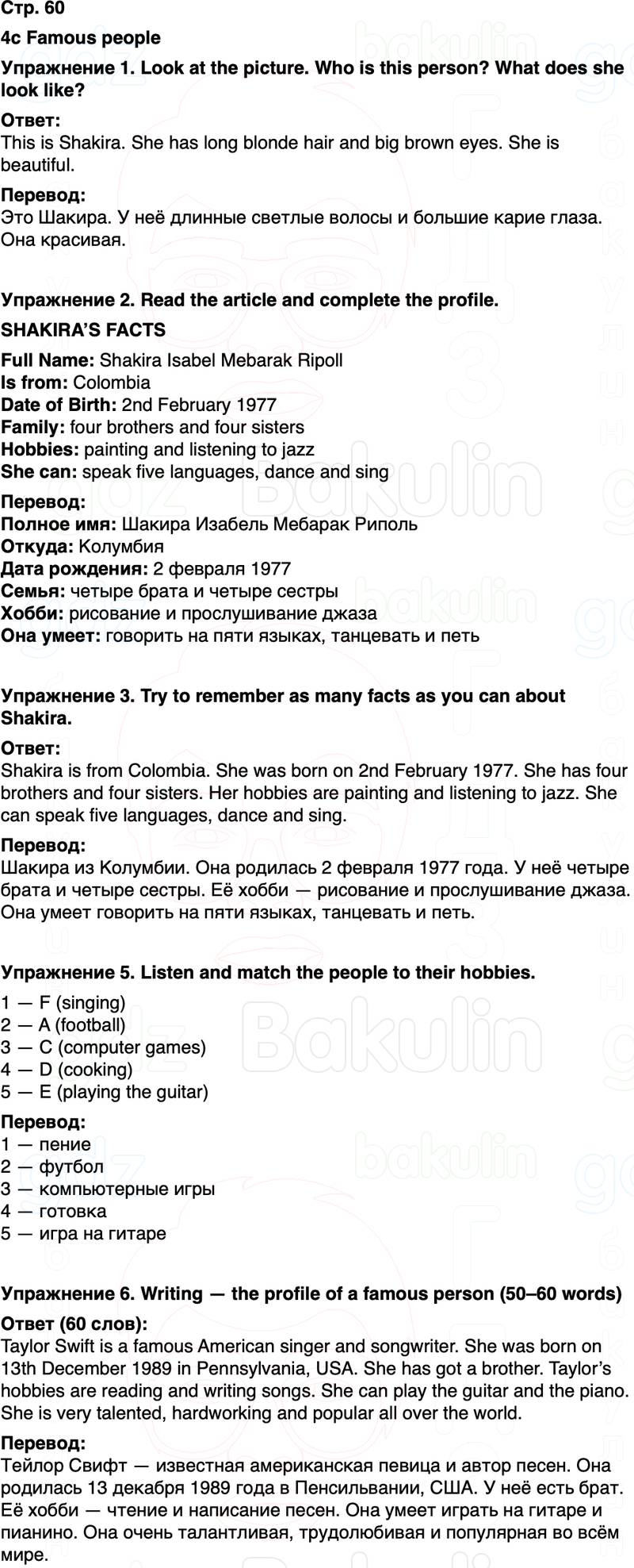 Упражнение 3. Try to remember as many facts as you can about Shakira.