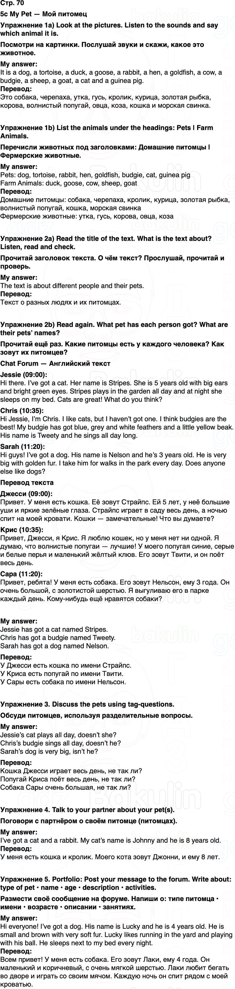 Упражнение 2b) Read again. What pet has each person got? What are their pets’ names?