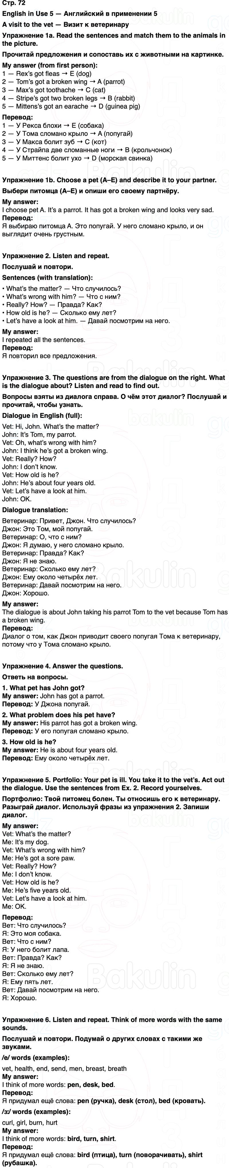 Упражнение 5. Portfolio: Your pet is ill. You take it to the vet’s. Act out the dialogue. Use the sentences from Ex. 2. Record yourselves.