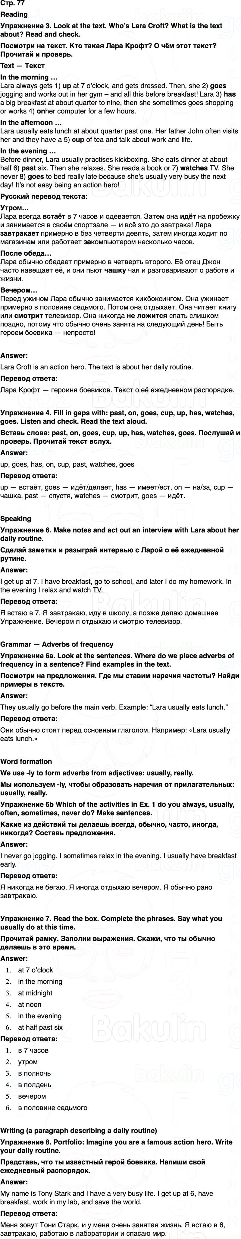 Упражнение 6. Make notes and act out an interview with Lara about her daily routine.