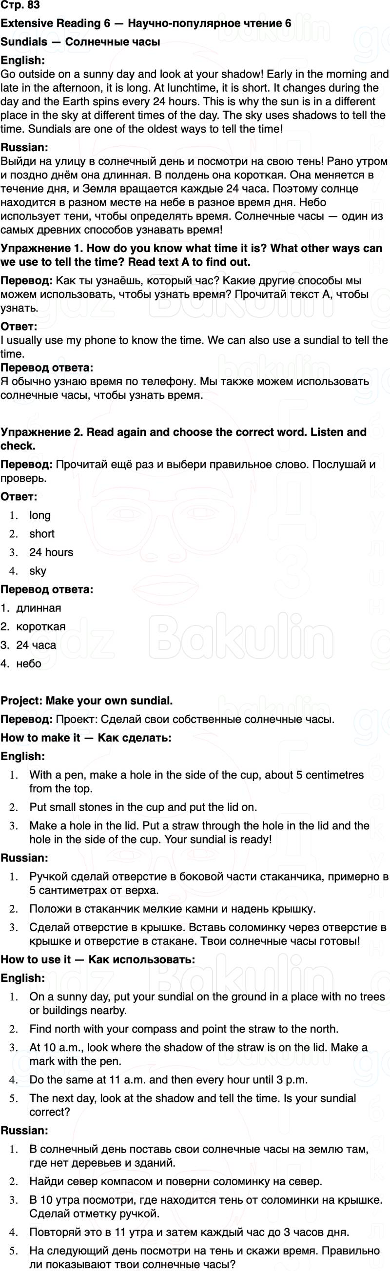 Перевод: Как ты узнаёшь, который час? Какие другие способы мы можем использовать, чтобы узнать время? Прочитай текст А, чтобы узнать.