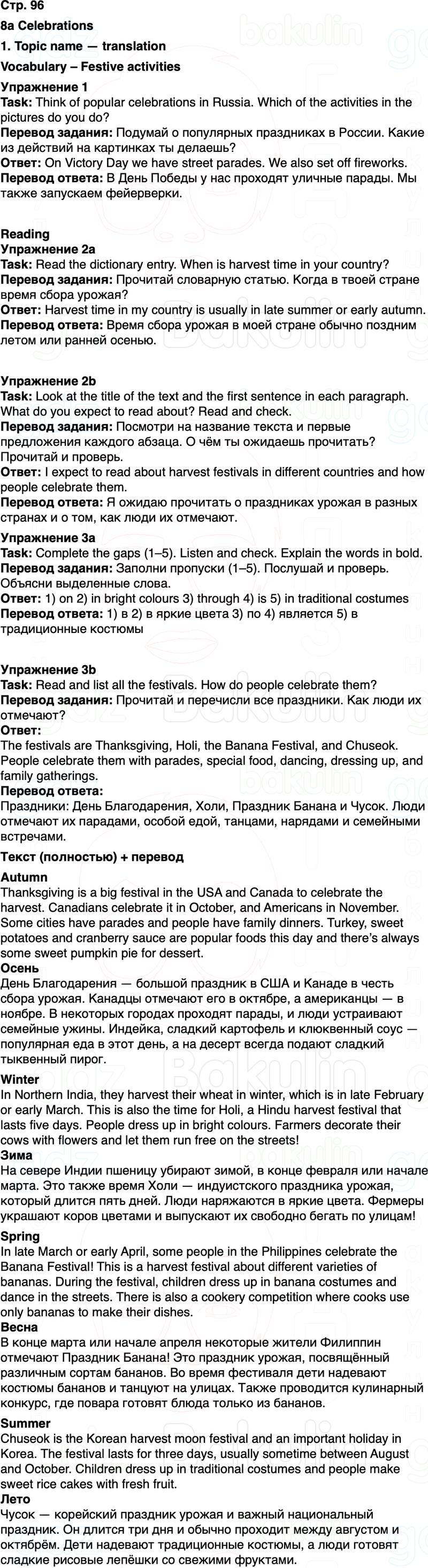Перевод задания: Прочитай словарную статью. Когда в твоей стране время сбора урожая?