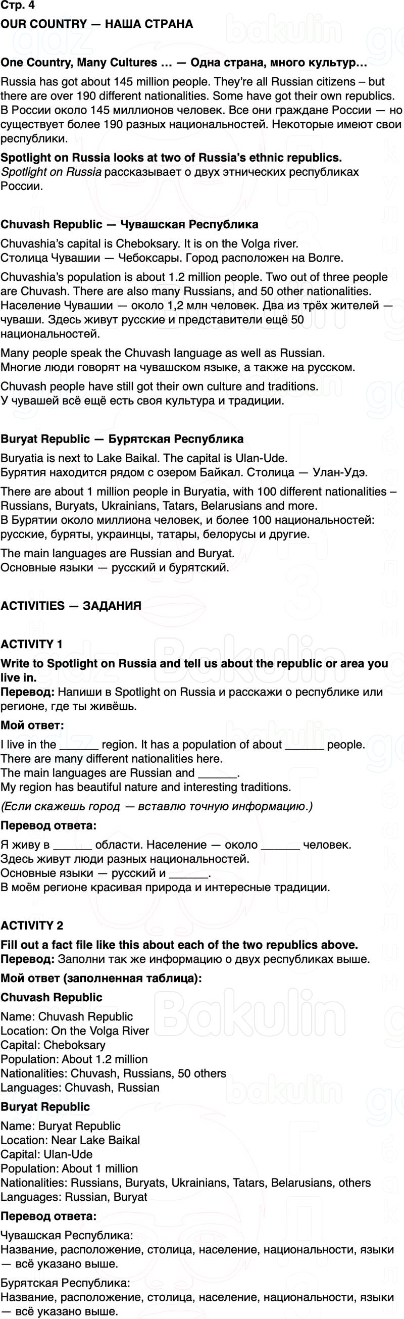 Перевод: Напиши в Spotlight on Russia и расскажи о республике или регионе, где ты живёшь.