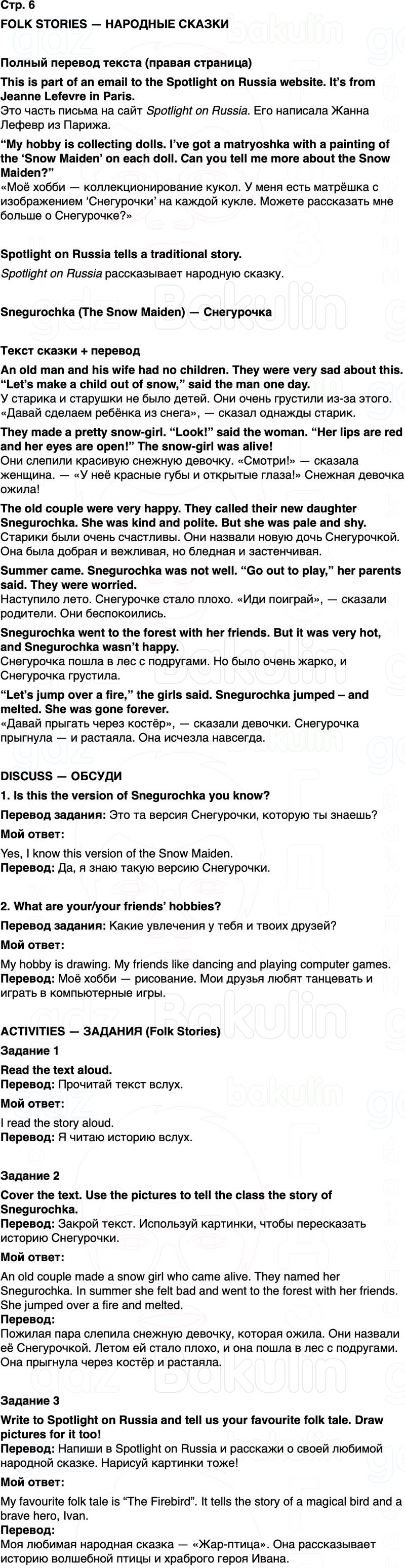 Перевод: Напиши в Spotlight on Russia и расскажи о своей любимой народной сказке. Нарисуй картинки тоже!