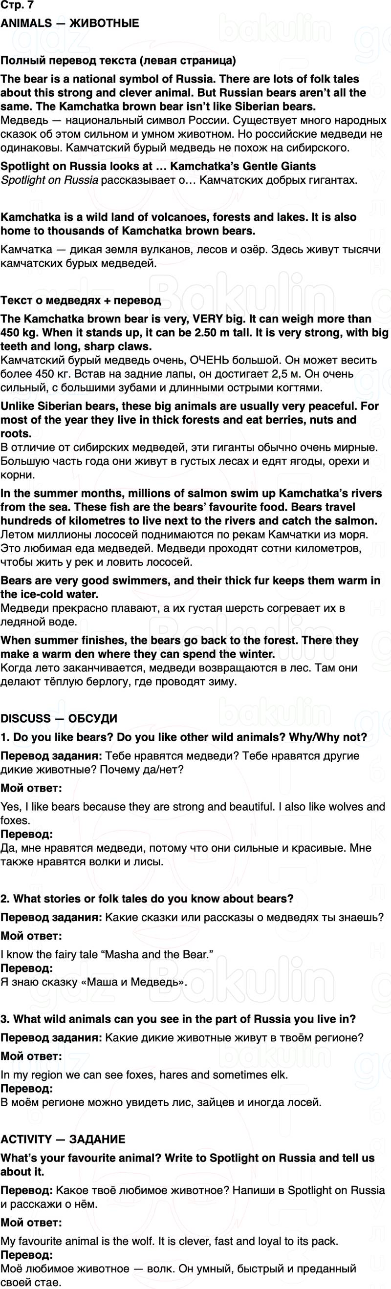 Перевод: Какое твоё любимое животное? Напиши в Spotlight on Russia и расскажи о нём.