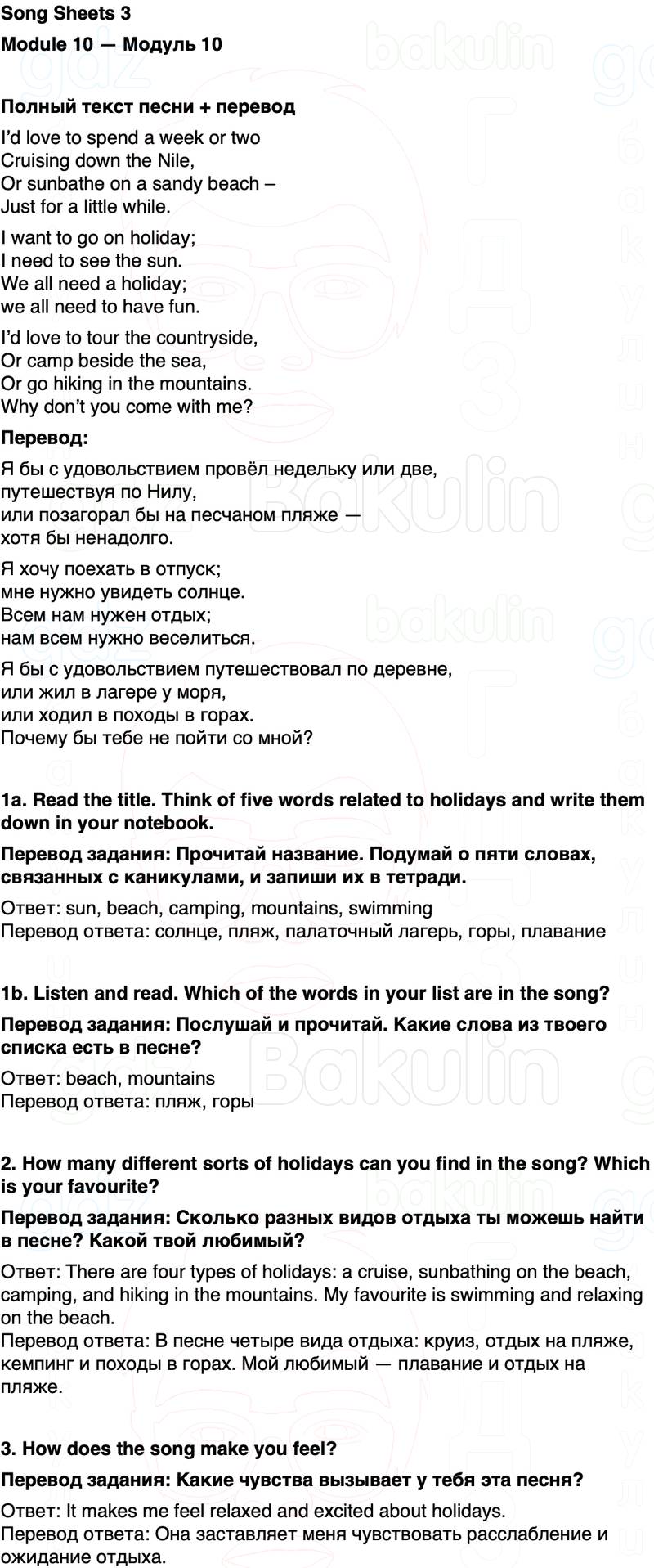 Перевод задания: Сколько разных видов отдыха ты можешь найти в песне? Какой твой любимый?