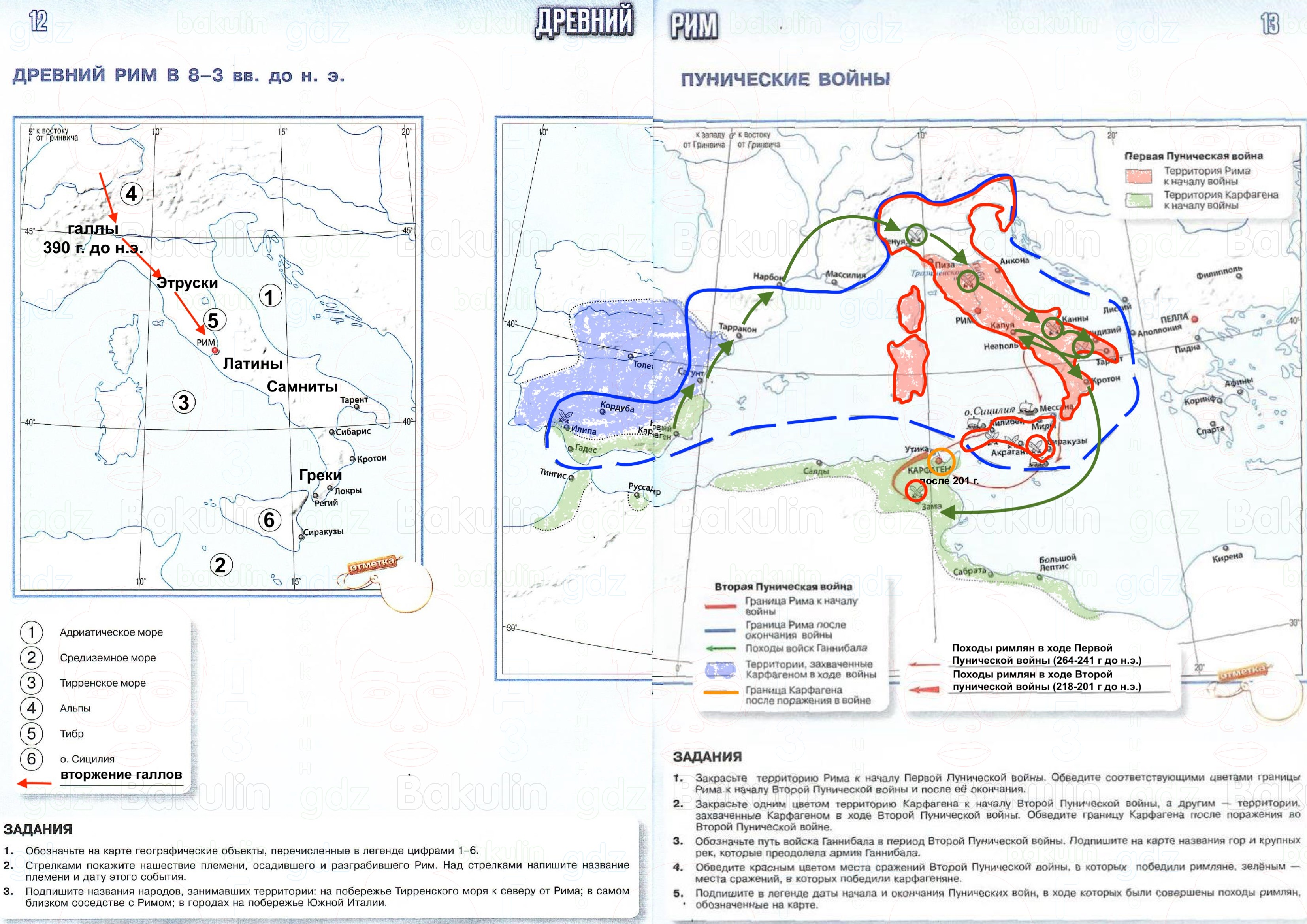 5. Подпишите в легенде даты начала и окончания Пунических войн, в ходе которых были совершены походы римлян, обозначенные на карте.
