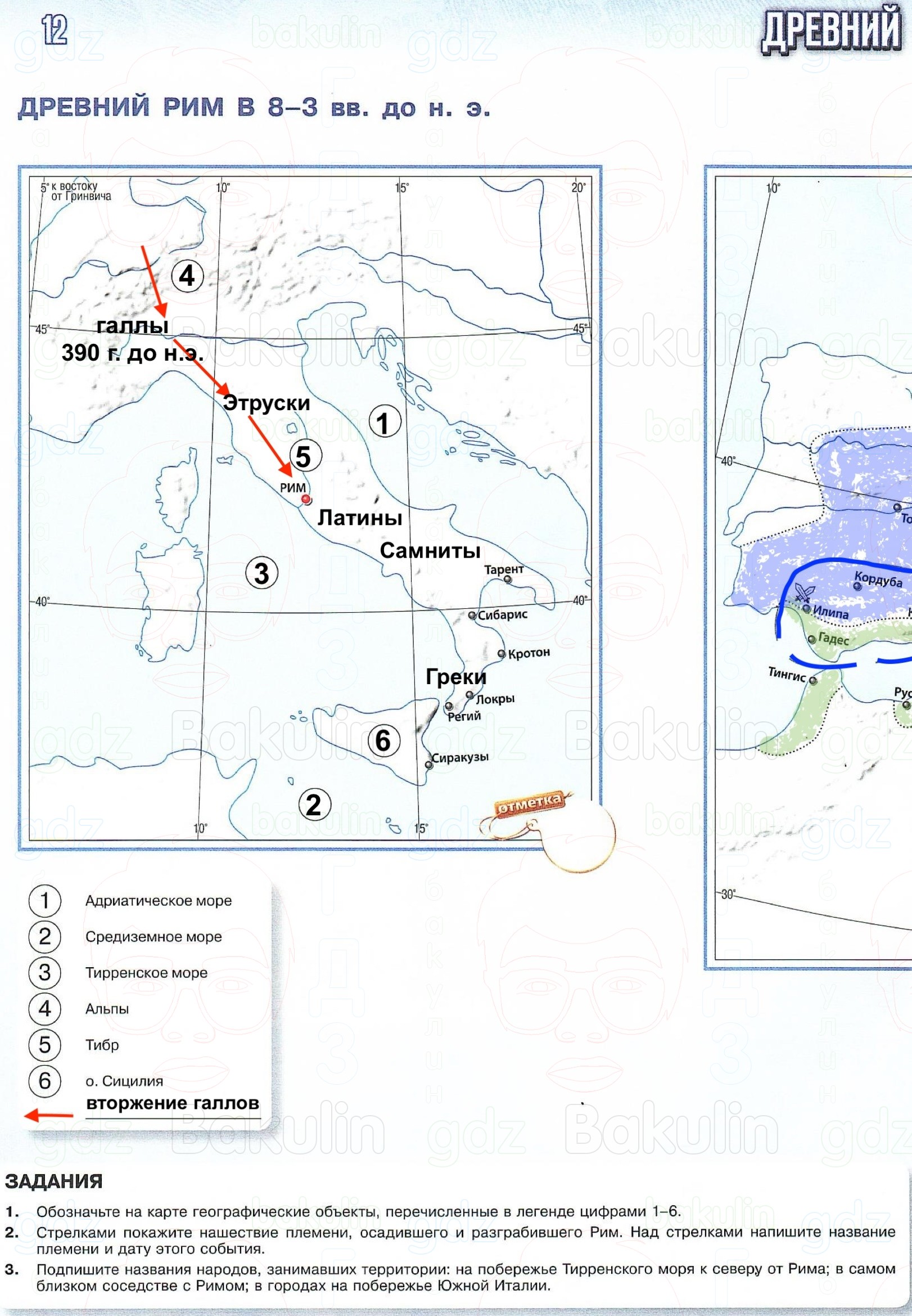 3. Подпишите названия народов, занимавших территории: на побережье Тирренского моря к северу от Рима; в самом близком соседстве с Римом; в городах на побережье Южной Италии.