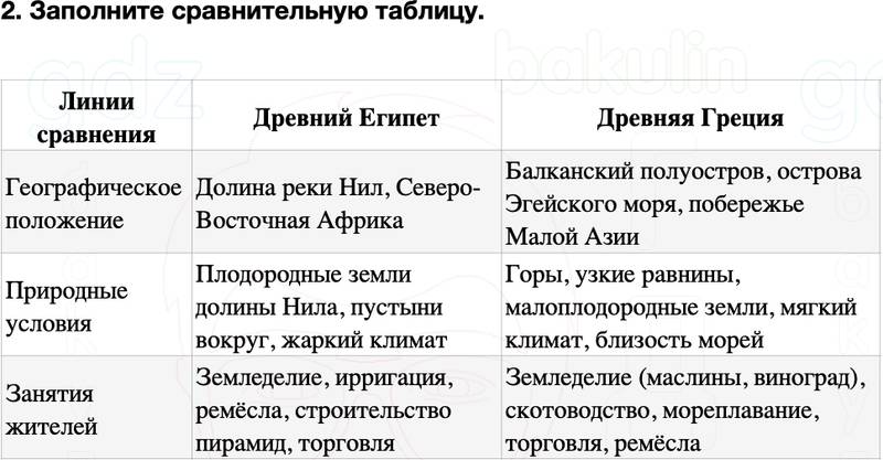 Правильный ответ к заданию из ГДЗ История древнего мира Рабочая тетрадь 5 класс Саплина, Соломатина §20 Начало греческой цивилизации, номер 2