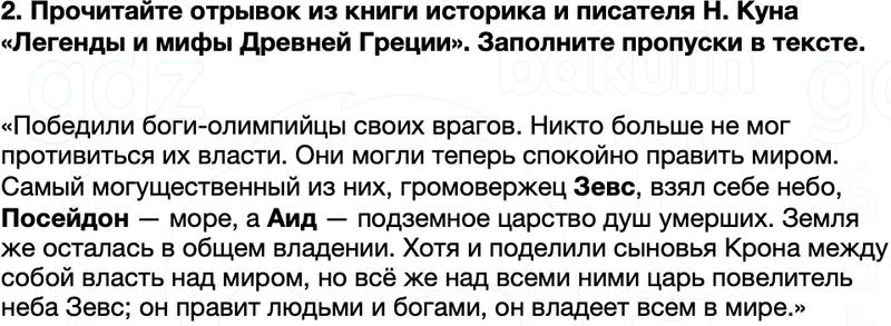 2. Прочитайте отрывок из книги историка и писателя Н. Куна «Легенды и мифы Древней Греции». Заполните пропуски в тексте.