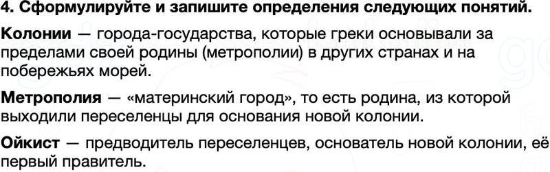 Правильный ответ к заданию из ГДЗ История древнего мира Рабочая тетрадь 5 класс Саплина, Соломатина §24. Великая греческая колонизация, номер 4