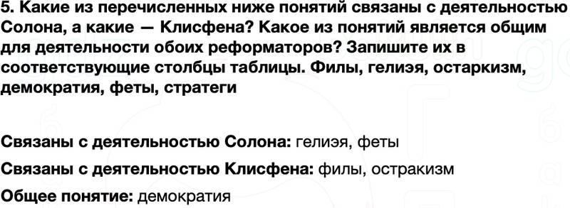 5. Какие из перечисленных ниже понятий связаны с деятельностью Солона, а какие — Клисфена? Какое из понятий является общим для деятельности обоих реформаторов? Запишите их в соответствующие столбцы таблицы.