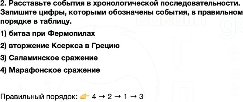 2. Расставьте события в хронологической последовательности. Запишите цифры, которыми обозначены события, в правильном порядке в таблицу.