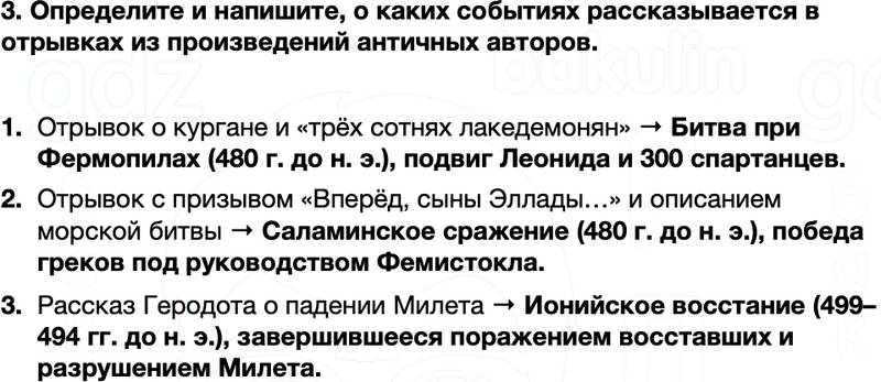 3. Определите и напишите, о каких событиях рассказывается в отрывках из произведений античных авторов.