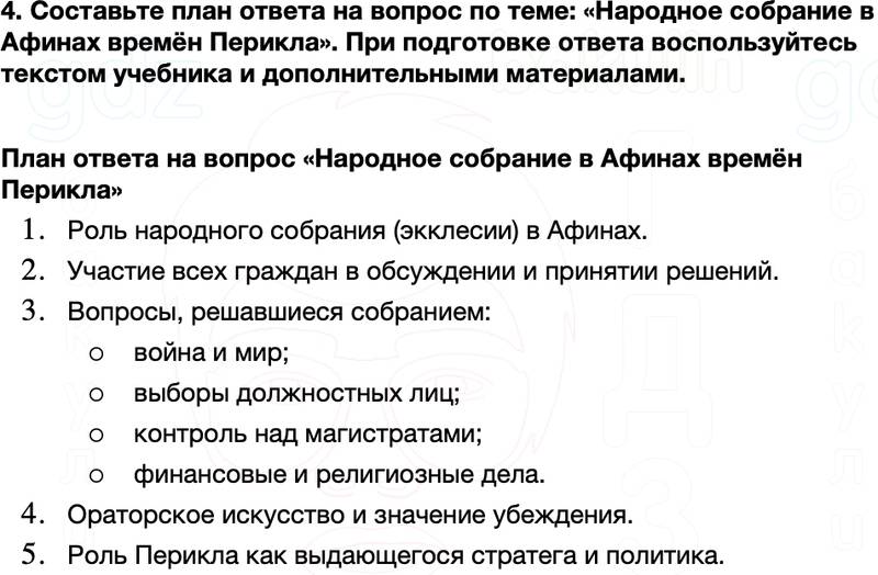 4. Составьте план ответа на вопрос по теме: «Народное собрание в Афинах времён Перикла».