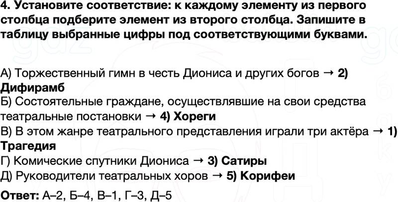 Правильный ответ к заданию из ГДЗ История древнего мира Рабочая тетрадь 5 класс Саплина, Соломатина §33 Театр в жизни древних греков, номер 4