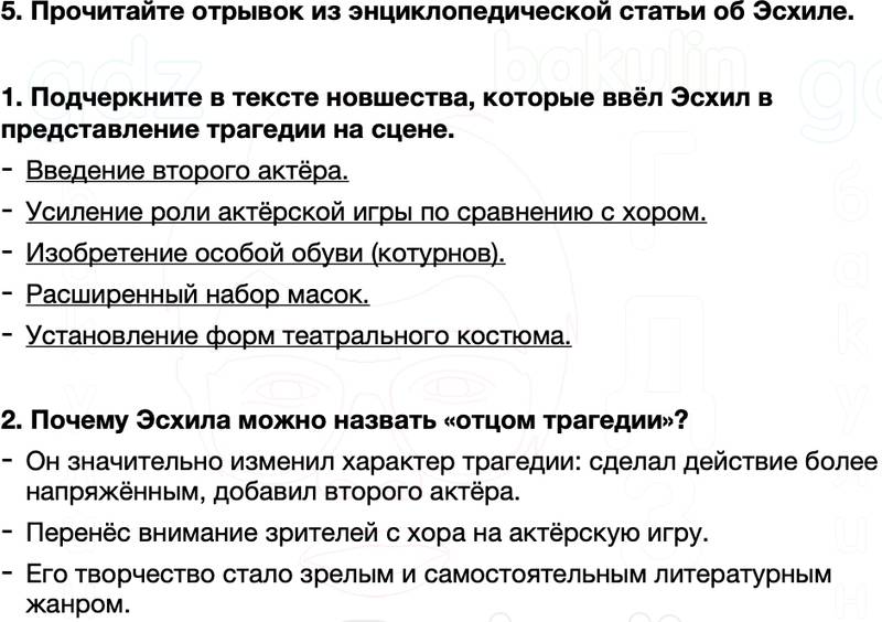 5. Прочитайте отрывок из энциклопедической статьи об Эсхиле. Выполните задание и ответьте на вопрос.