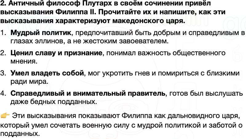 Филиппа II. Прочитайте их и напишите, как эти высказывания характеризуют македонского царя.