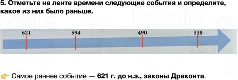 5. Отметьте на ленте времени следующие события и определите, какое из них было раньше.