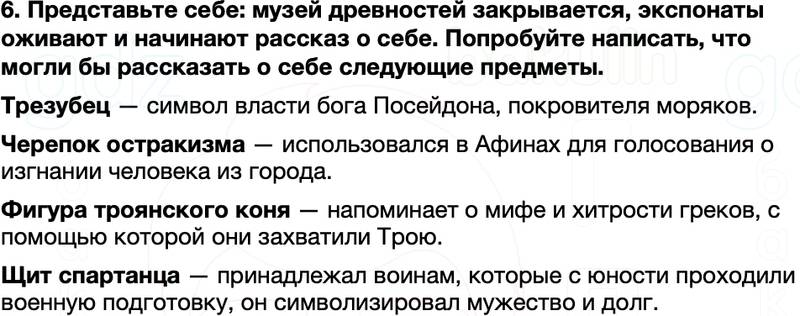 6. Представьте себе: музей древностей закрывается, экспонаты оживают и начинают рассказ о себе. Попробуйте написать, что могли бы рассказать о себе следующие предметы.