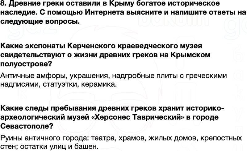 8. Древние греки оставили в Крыму богатое историческое наследие. С помощью Интернета выясните и напишите ответы на следующие вопросы.