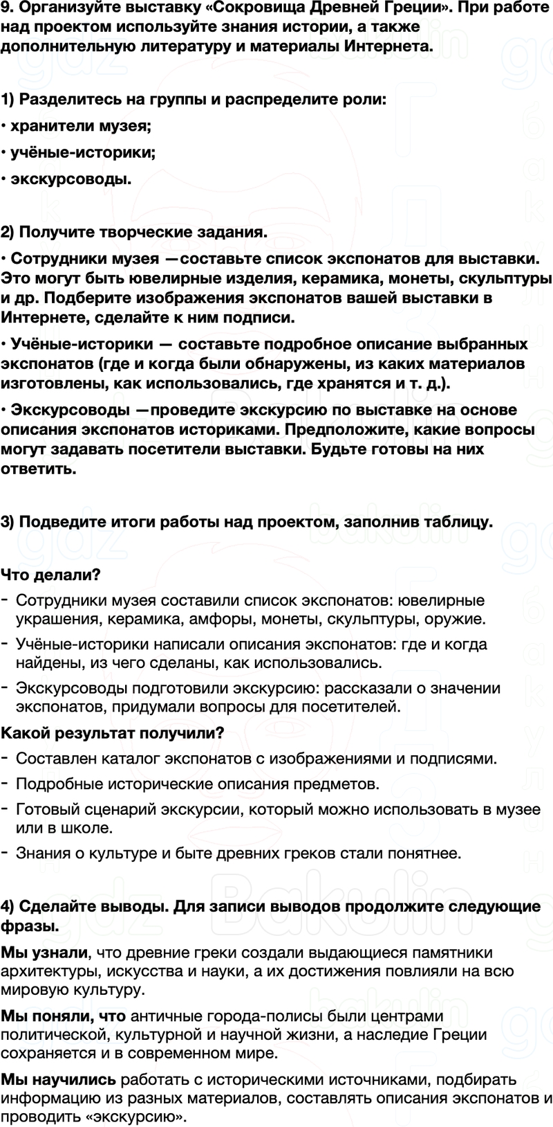 9. Организуйте выставку «Сокровища Древней Греции». При работе над проектом используйте знания истории, а также дополнительную литературу и материалы Интернета.