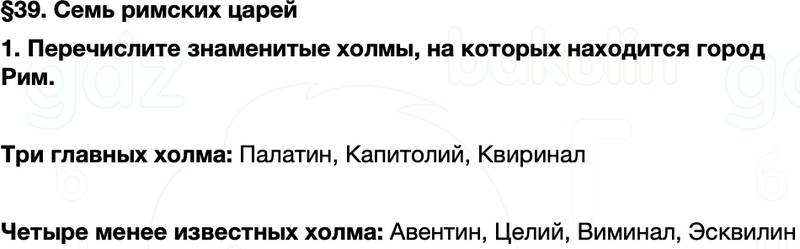 1. Перечислите знаменитые холмы, на которых находится город Рим.