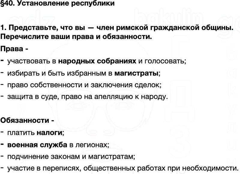 1. Представьте, что вы — член римской гражданской общины. Перечислите ваши права и обязанности.