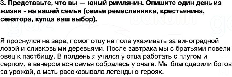 3. Представьте, что вы — юный римлянин. Опишите один день из жизни - на вашей семьи (семья ремесленника, крестьянина, сенатора, купца ваш выбор).