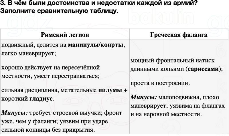 3. В чём были достоинства и недостатки каждой из армий? Заполните сравнительную таблицу.