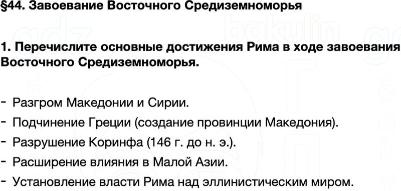 1. Перечислите основные достижения Рима в ходе завоевания Восточного Средиземноморья.
