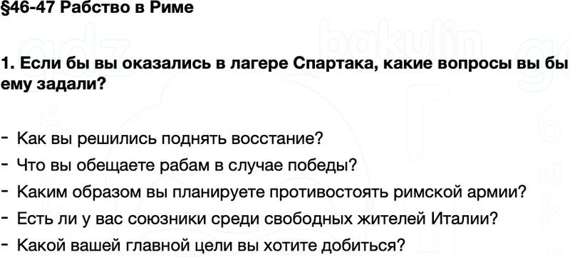 1. Рабство в Риме Если бы вы оказались в лагере Спартака, какие вопросы вы бы ему задали?