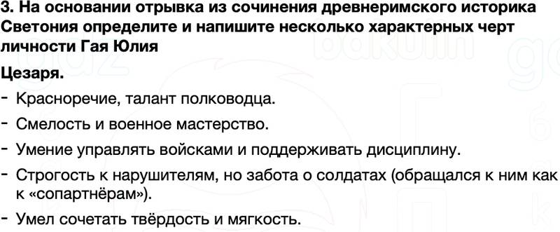 3. На основании отрывка из сочинения древнеримского историка Светония определите и напишите несколько характерных черт личности Гая Юлия