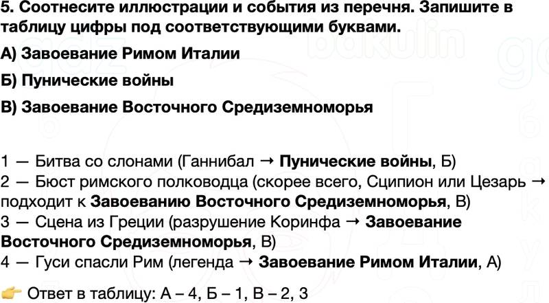 5. Соотнесите иллюстрации и события из перечня. Запишите в таблицу цифры под соответствующими буквами.