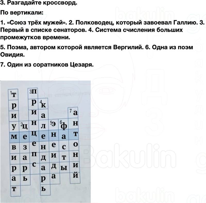 1. «Союз трёх мужей». 2. Полководец, который завоевал Галлию. 3. Первый в списке сенаторов. 4. Система счисления больших промежутков времени.