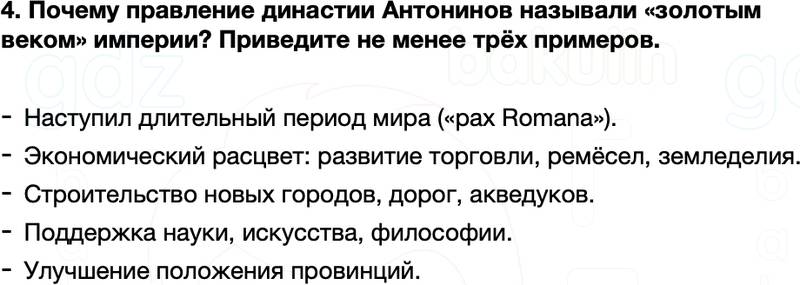 4. Почему правление династии Антонинов называли «золотым веком» империи? Приведите не менее трёх примеров.