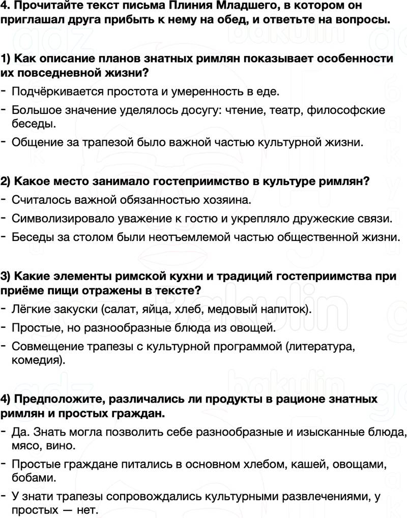 4. Прочитайте текст письма Плиния Младшего, в котором он приглашал друга прибыть к нему на обед, и ответьте на вопросы.