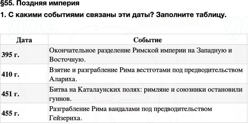 1. С какими событиями связаны эти даты? Заполните таблицу.
