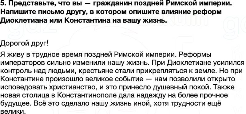 5. Представьте, что вы — гражданин поздней Римской империи. Напишите письмо другу, в котором опишите влияние реформ Диоклетиана или Константина на вашу жизнь.
