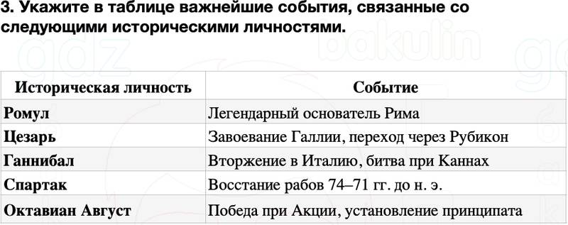 3. Укажите в таблице важнейшие события, связанные со следующими историческими личностями.