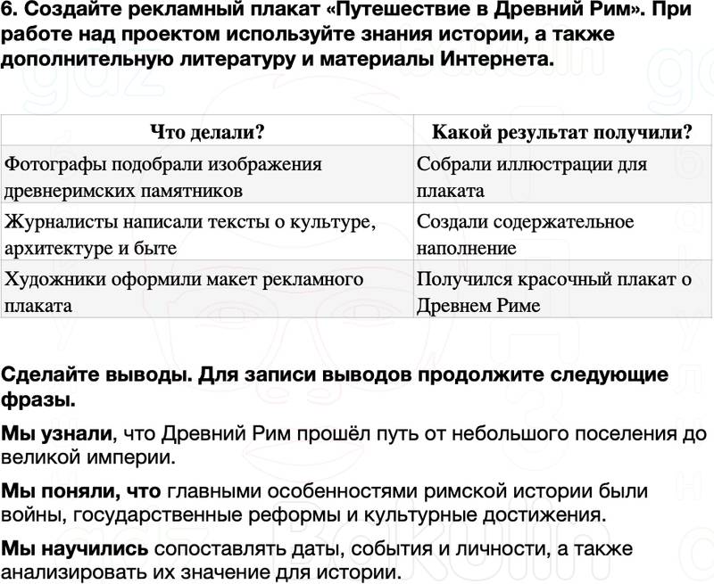 6. Создайте рекламный плакат «Путешествие в Древний Рим». При работе над проектом используйте знания истории, а также дополнительную литературу и материалы Интернета.