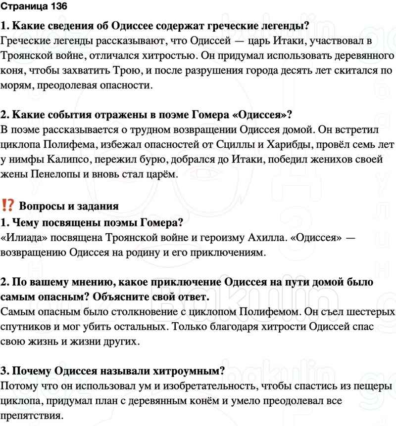 1. Какие сведения об Одиссее содержат греческие легенды?