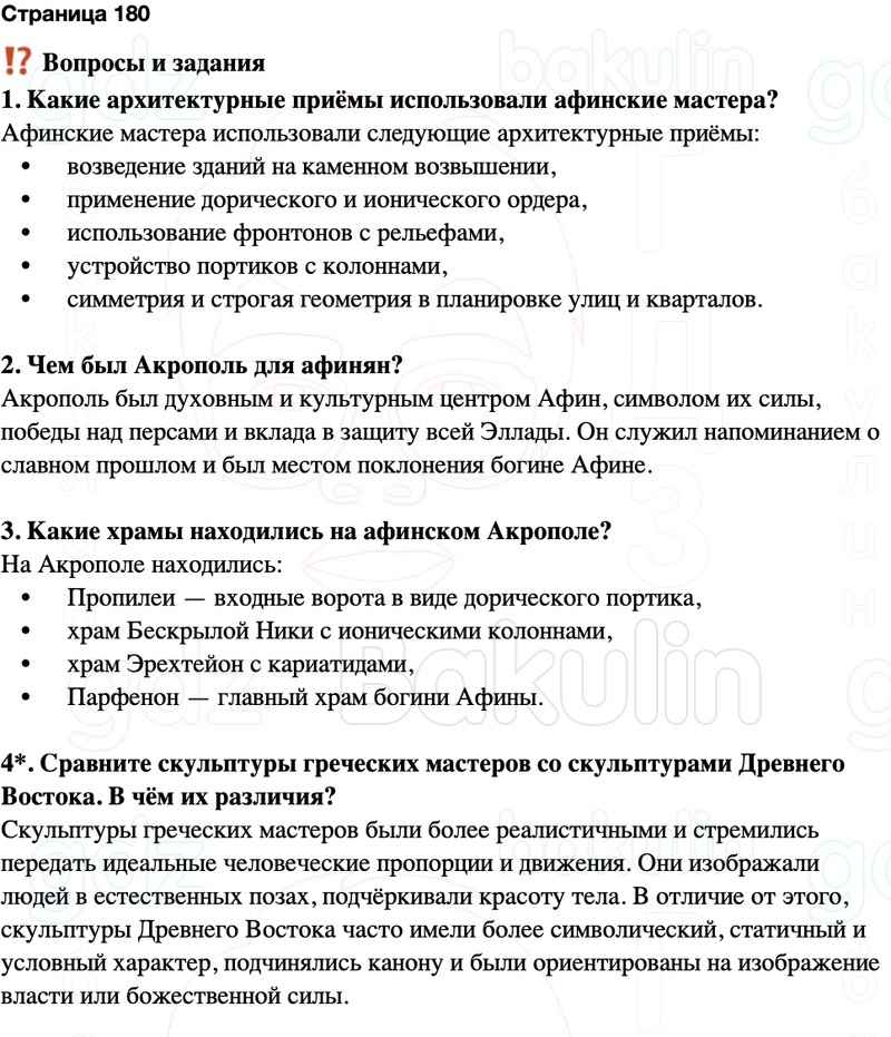 4*. Сравните скульптуры греческих мастеров со скульптурами Древнего Востока. В чём их различия?
