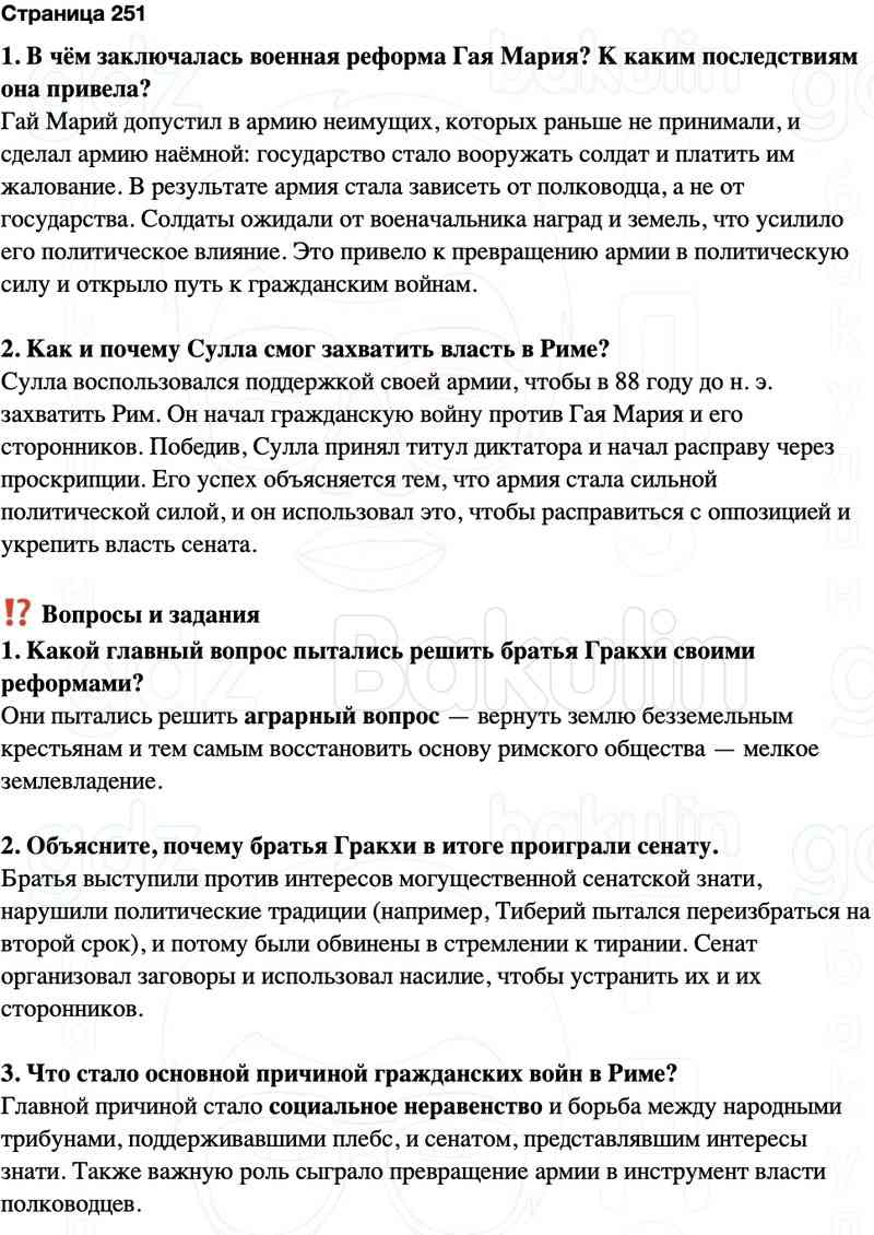 ? Сформулируйте ответ на главный вопрос параграфа, обоснуйте его двумя-тремя аргументами. К каким последствиям привели реформы братьев Гракхов?