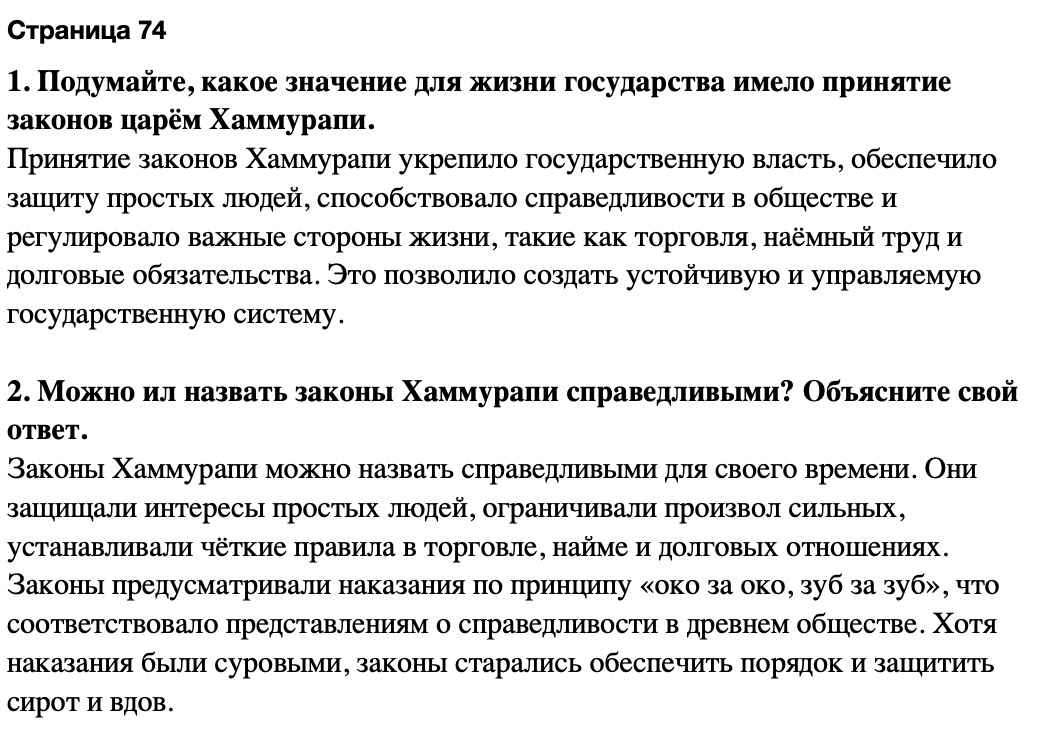 1. Подумайте, какое значение для жизни государства имело принятие законов царём Хаммурапи.