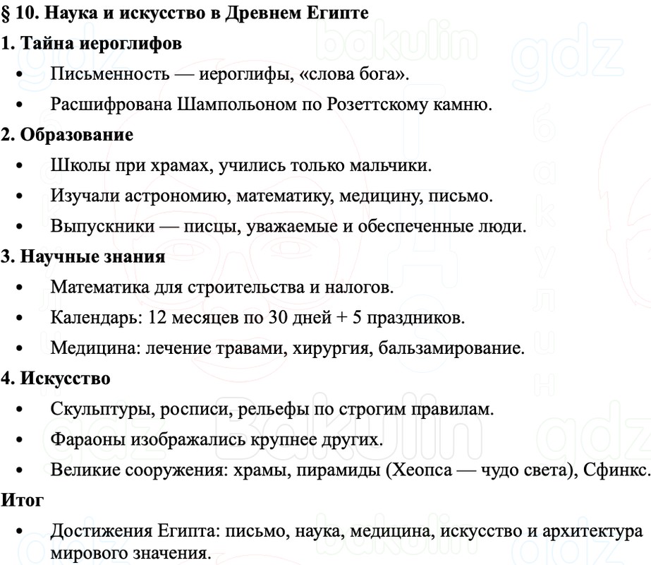 Краткое содержание и пересказ Параграф 10. Наука и искусство в Древнем Египте